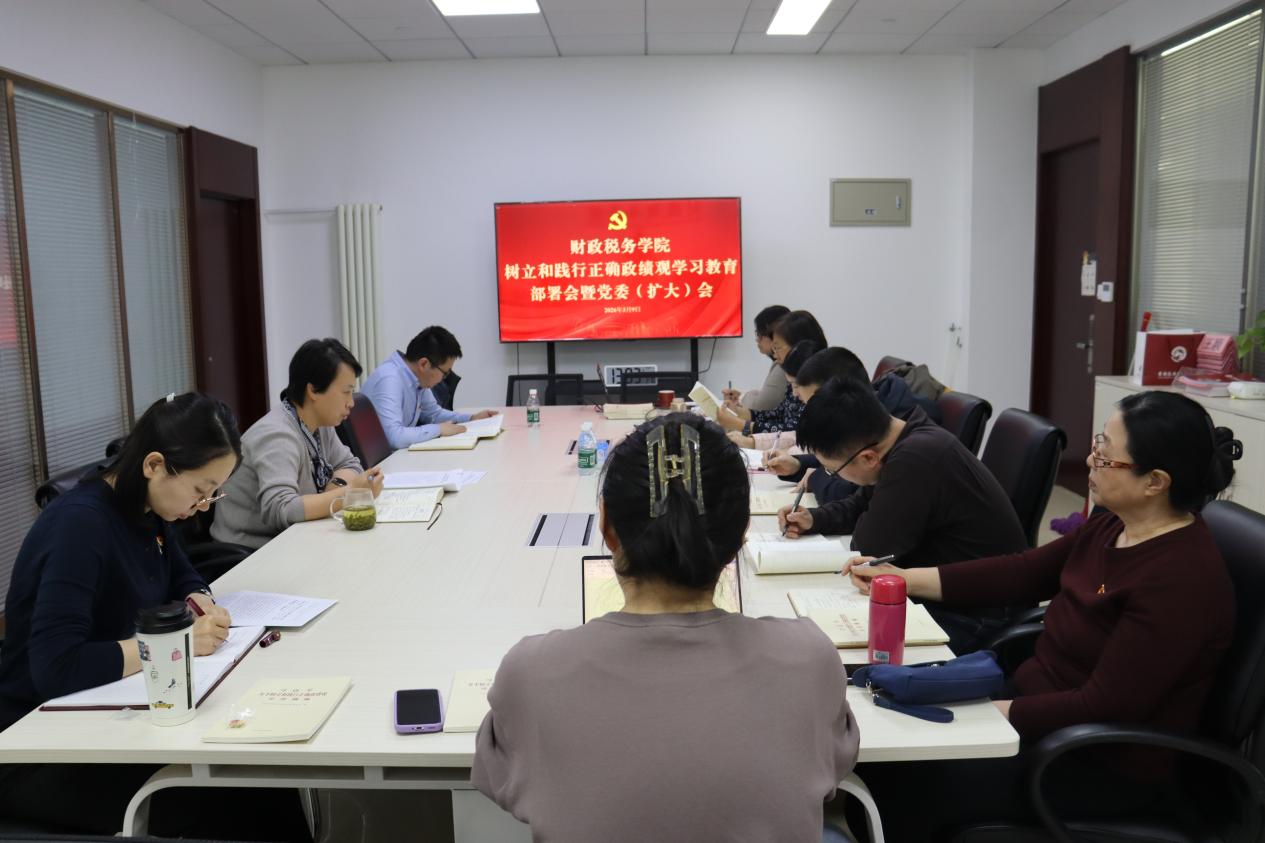 2026年3月10日,财政税务学院党委召开树立和践行正确政绩观学习教育部署会暨党委(扩大)会,部署树立和践行正确政绩观学习教育工作,学院党委委员、专职组织员、教师党支部书记、系主任参加会议,会议由党委书记韩静主持。