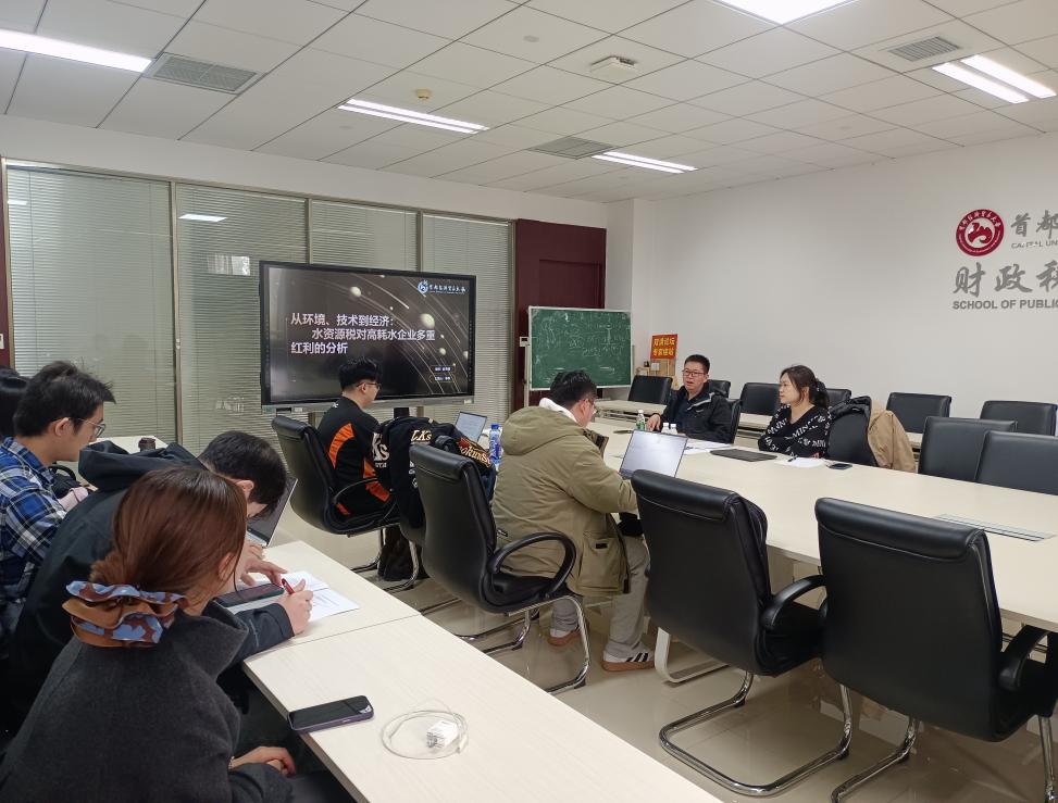 汇报环节,李昂围绕论文《从环境、技术到经济:水资源税对高耗水企业多重红利的分析》,从研究背景、理论分析、实证检验三个维度系统展开。其详细阐述了水资源税政策对高耗水企业的影响机制,通过实证数据验证相关研究假设,为政策效果评估提供了扎实的学术参考。