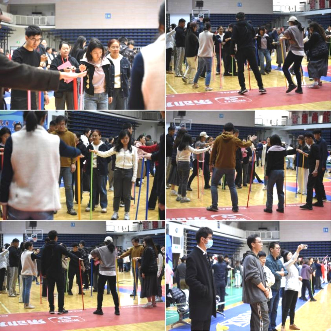 10月23日,张馨予、张亦然、张哲元、薛钦源、刘笑彤、马梦迪、王群、唐火青、程小萌、刘硕等十位老师组队参与“不倒森林”比赛。老师们在喧闹的比赛现场中高度集中精神,在关注前面队友的动作的同时,保证自身动作的规范性和连贯性,10名成员间配合默契,经过紧张激烈的角逐,财政税务学院分工会在这一比赛项目中取得了一等奖的好成绩。