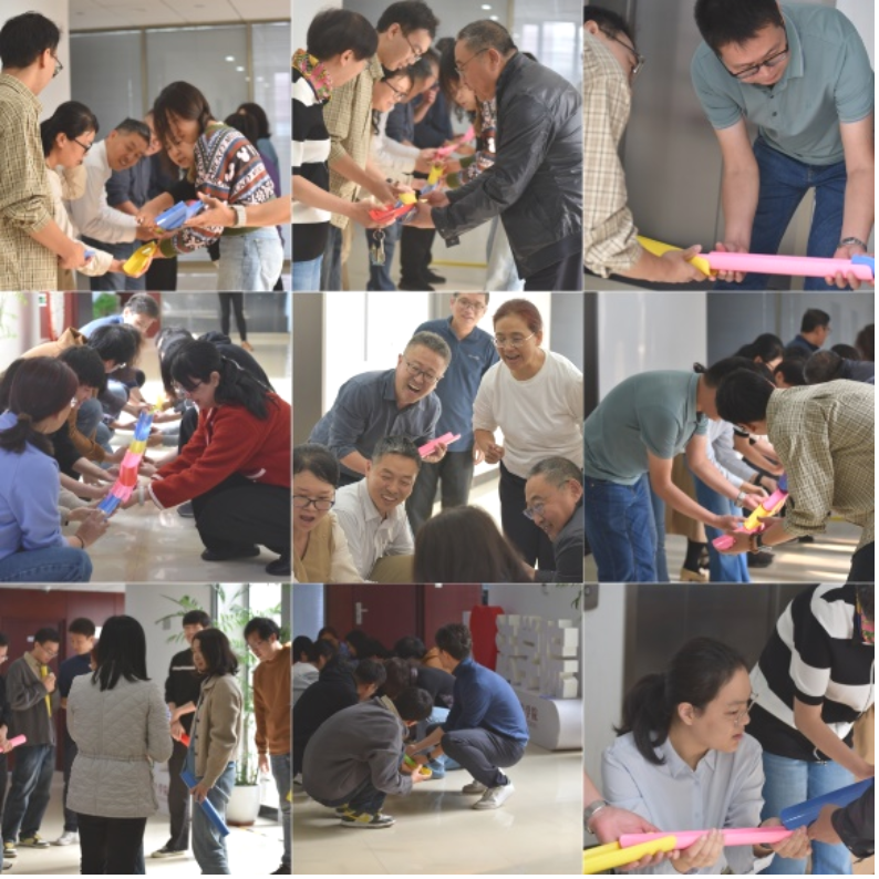 本次文化体育节的第二类项目是集体项目,包括能量传输、不倒森林和趣味篮球。老师们积极参与,展现出了充沛的热情和勇于挑战的竞技状态。学院分工会还特邀往届参赛经验丰富的老师给予技术讲解和指导,大家在欢声笑语中进一步熟悉了项目比赛规则和要领技巧。例如,能量传输和不倒森林都是需要手眼协调、灵活反应的比赛项目;趣味投篮赛不仅考验老师们的投篮技术水平,也对老师们的心理素质和团队协作能力提出了很高的要求。